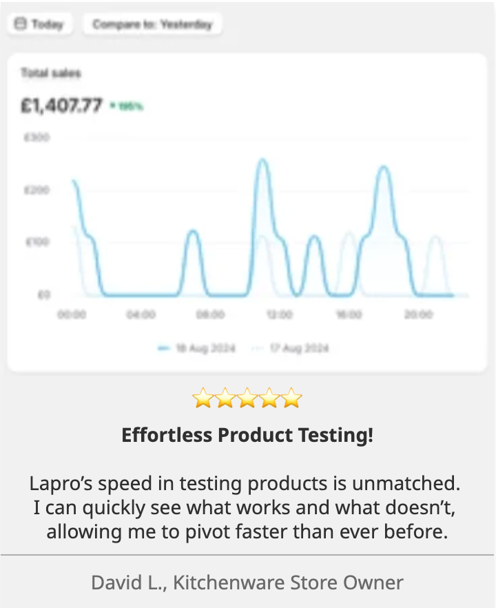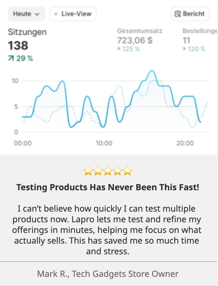 I can’t believe how quickly I can test multiple products now. Lapro lets me test and refine my offerings in minutes, helping me focus on what actually sells. This has saved me so much time and stress.