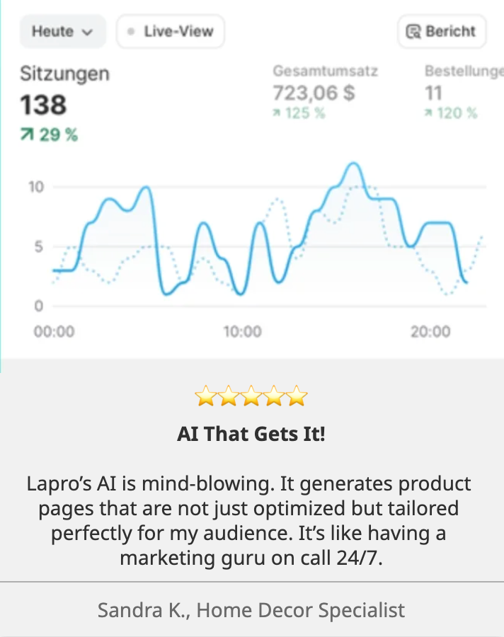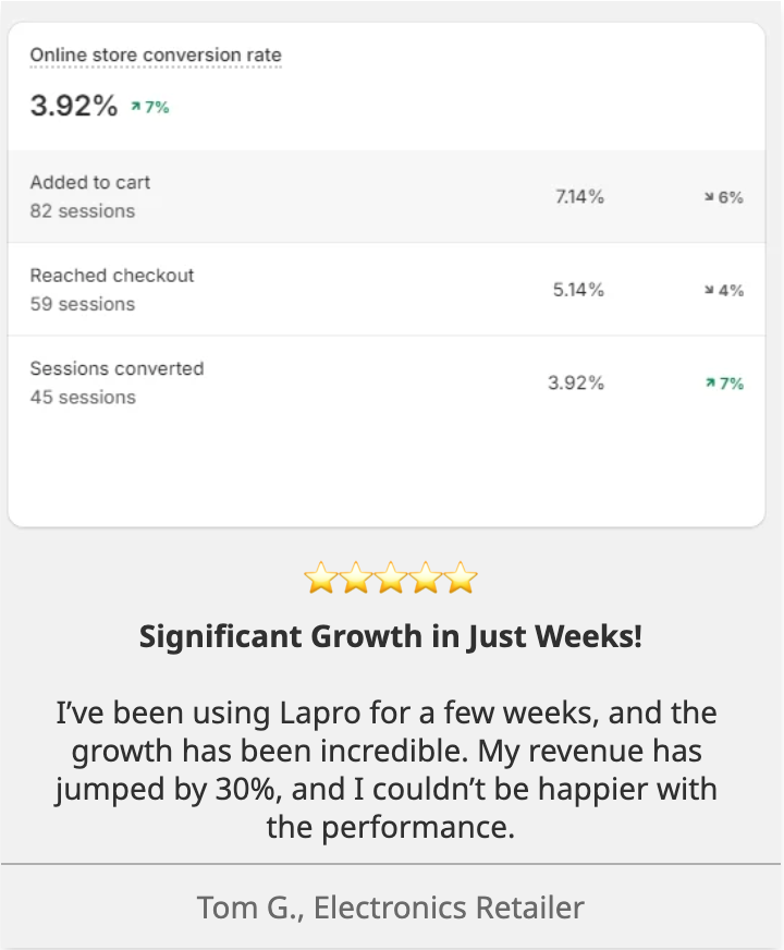 "I was skeptical at first, but Lapro blew me away. My store’s conversion rate shot up by 35% almost immediately. The product pages are so well-optimized that they practically sell themselves."