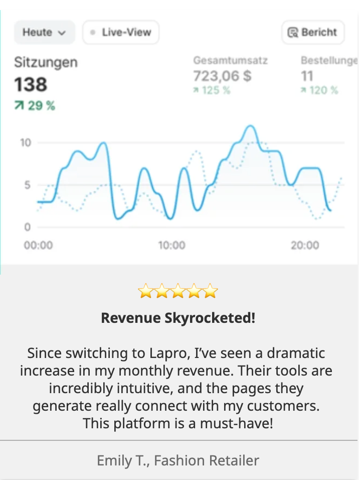 Since switching to Lapro, I’ve seen a dramatic increase in my monthly revenue. Their tools are incredibly intuitive, and the pages they generate really connect with my customers. This platform is a must-have!