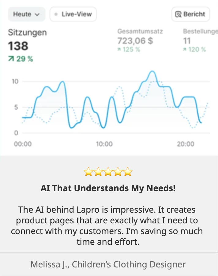 The AI behind Lapro is impressive. It creates product pages that are exactly what I need to connect with my customers. I’m saving so much time and effort.