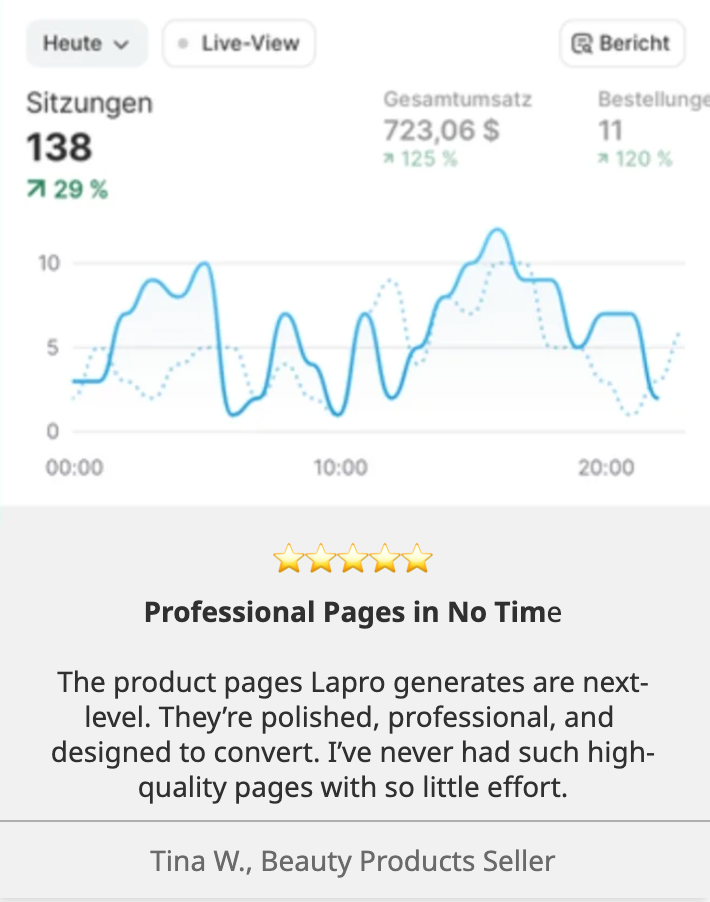 The product pages Lapro generates are next-level. They’re polished, professional, and designed to convert. I’ve never had such high-quality pages with so little effort.